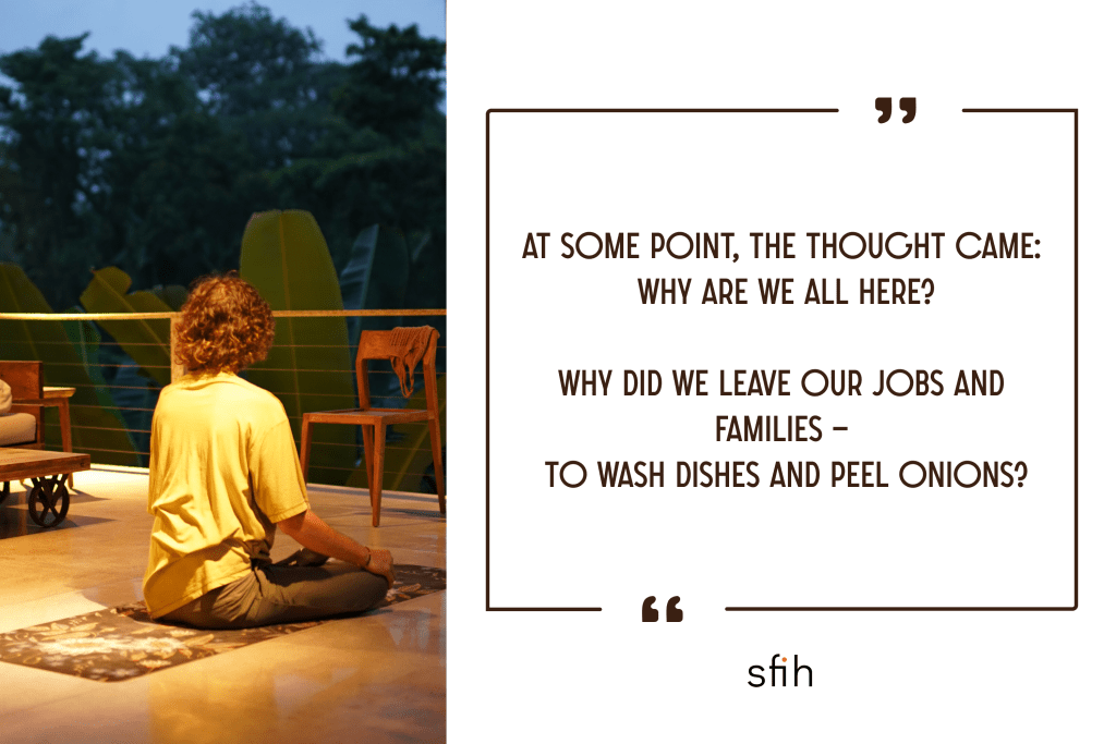 Why did all these people leave their work, their families, their wives, their children — to be completely offline and not just to practice, but… to cook meals, peel onions, chop carrots, and wash dishes?
